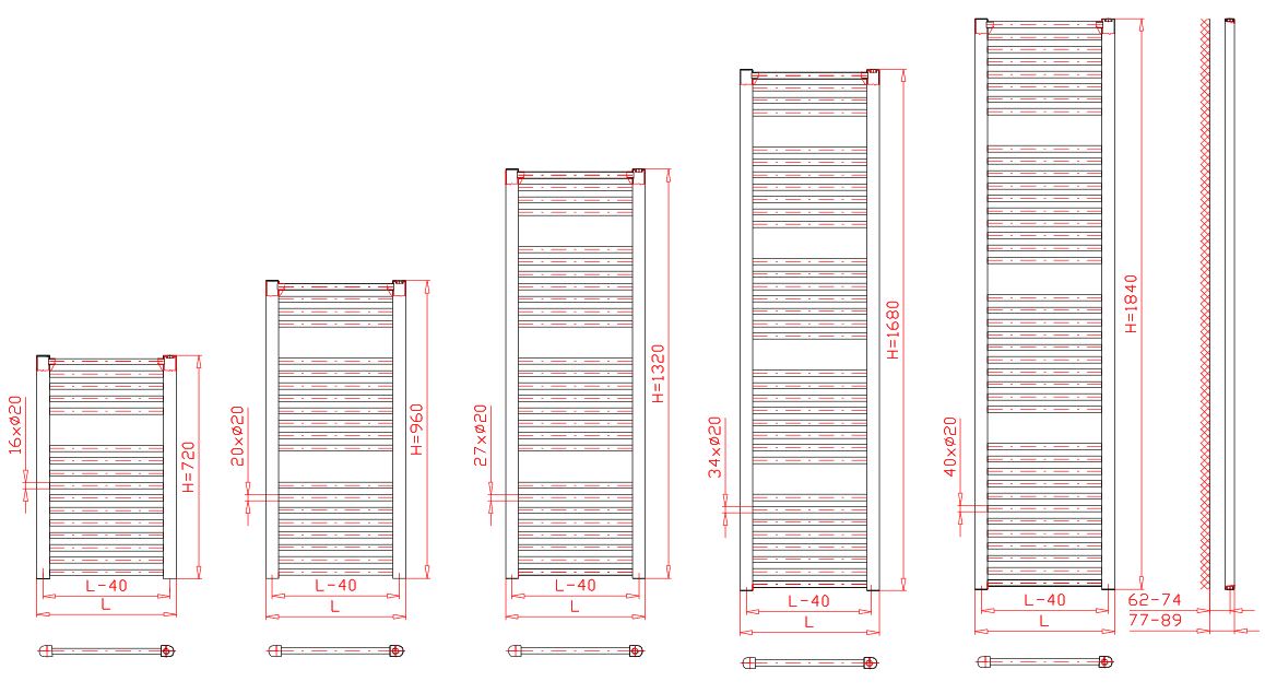 „KD” Egyenes törölközõszárító radiátor – 450/1850